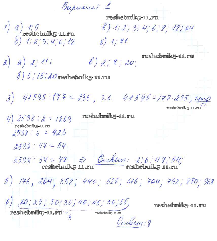 Готовая домашняя работа с ответами по Математике за 6 класс Попов Дидактические материалы УМК Экзамен 2017 ФГОС - СР-1. Варианты 1