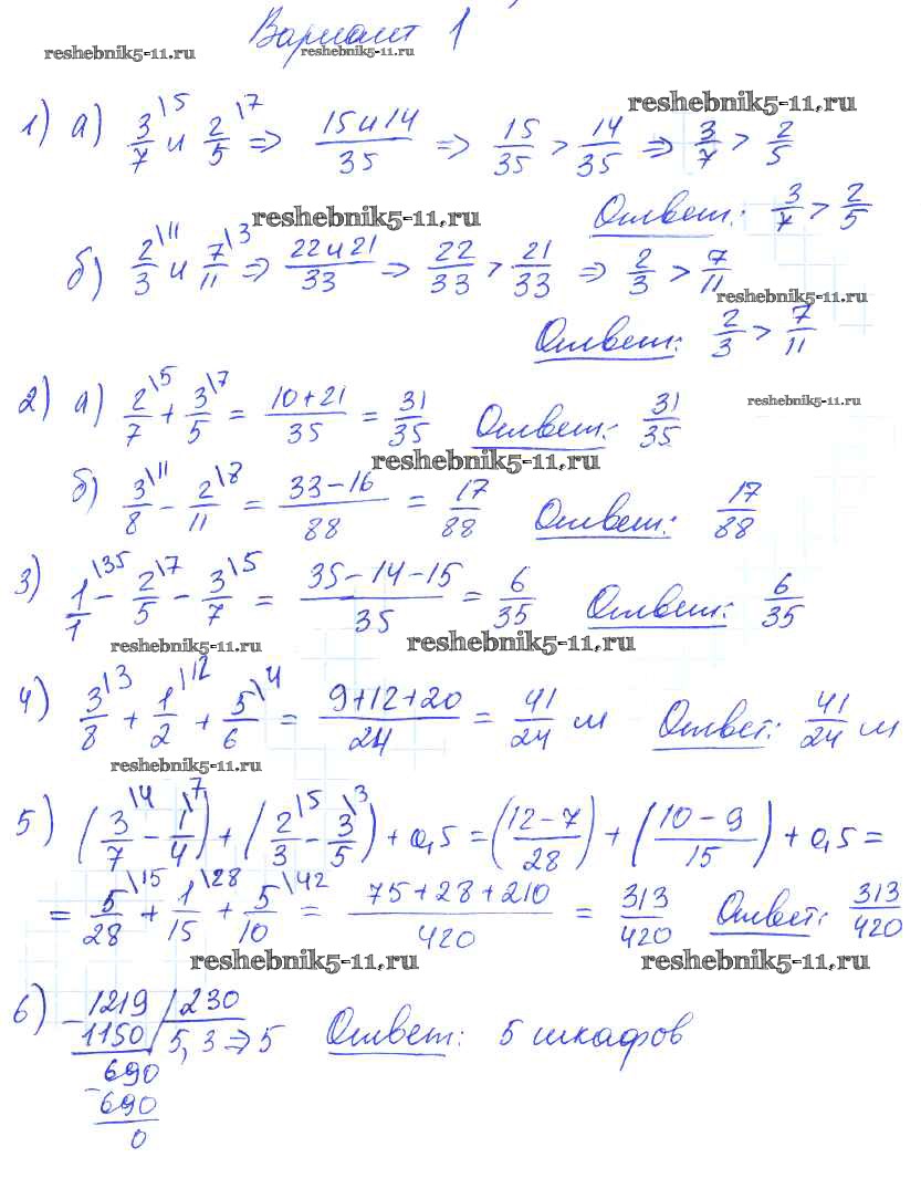 Готовая домашняя работа с ответами по Математике за 6 класс Попов Дидактические материалы УМК Экзамен 2017 ФГОС - СР-11. Варианты 1