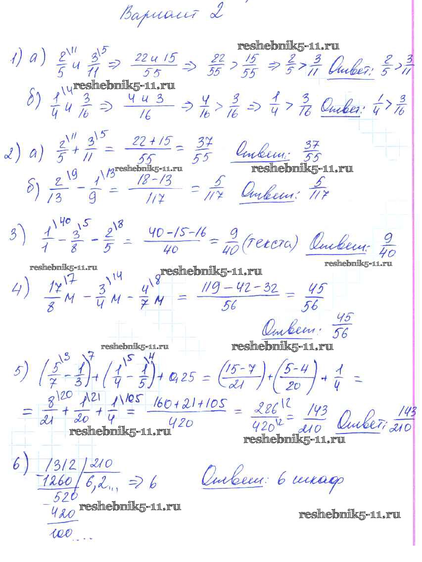 Готовая домашняя работа с ответами по Математике за 6 класс Попов Дидактические материалы УМК Экзамен 2017 ФГОС - СР-11. Варианты 2