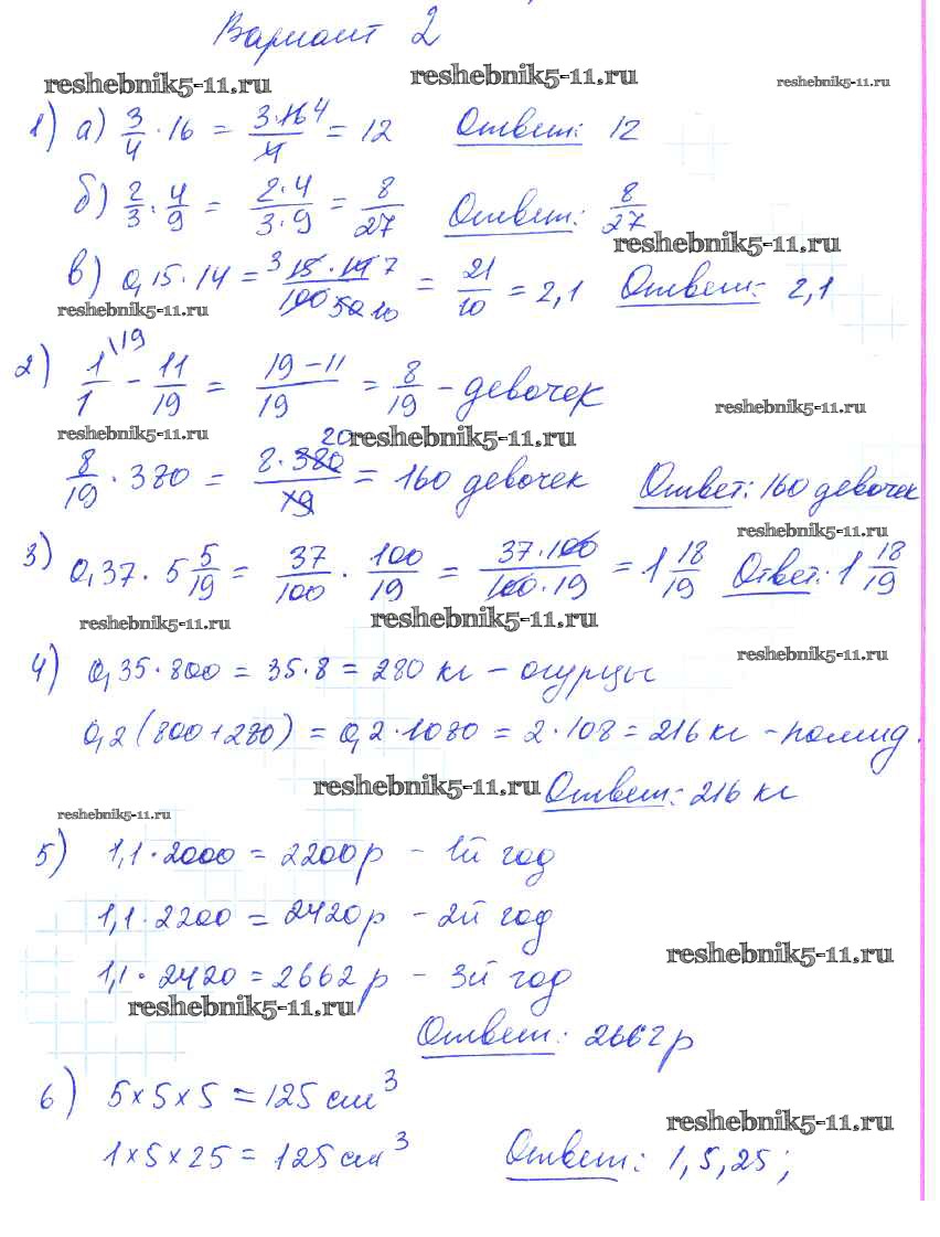 Готовая домашняя работа с ответами по Математике за 6 класс Попов Дидактические материалы УМК Экзамен 2017 ФГОС - СР-14. Варианты 2