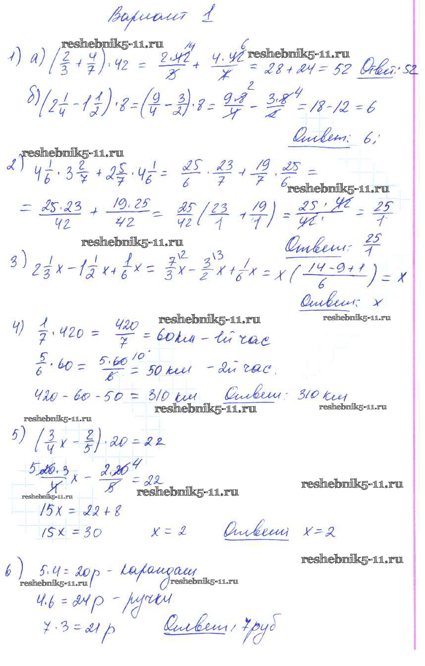 Готовая домашняя работа с ответами по Математике за 6 класс Попов Дидактические материалы УМК Экзамен 2017 ФГОС - СР-15. Варианты 1