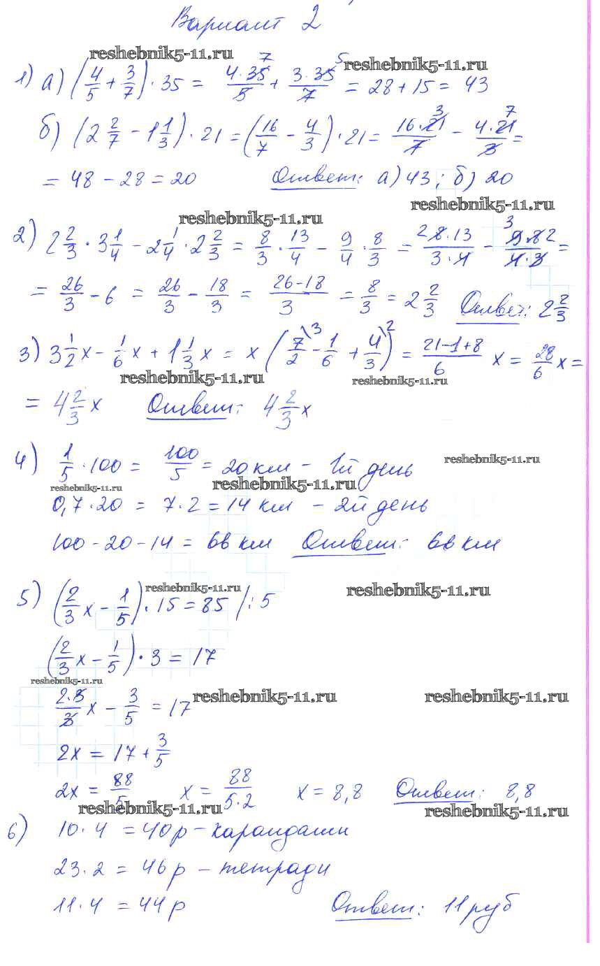Готовая домашняя работа с ответами по Математике за 6 класс Попов Дидактические материалы УМК Экзамен 2017 ФГОС - СР-15. Варианты 2
