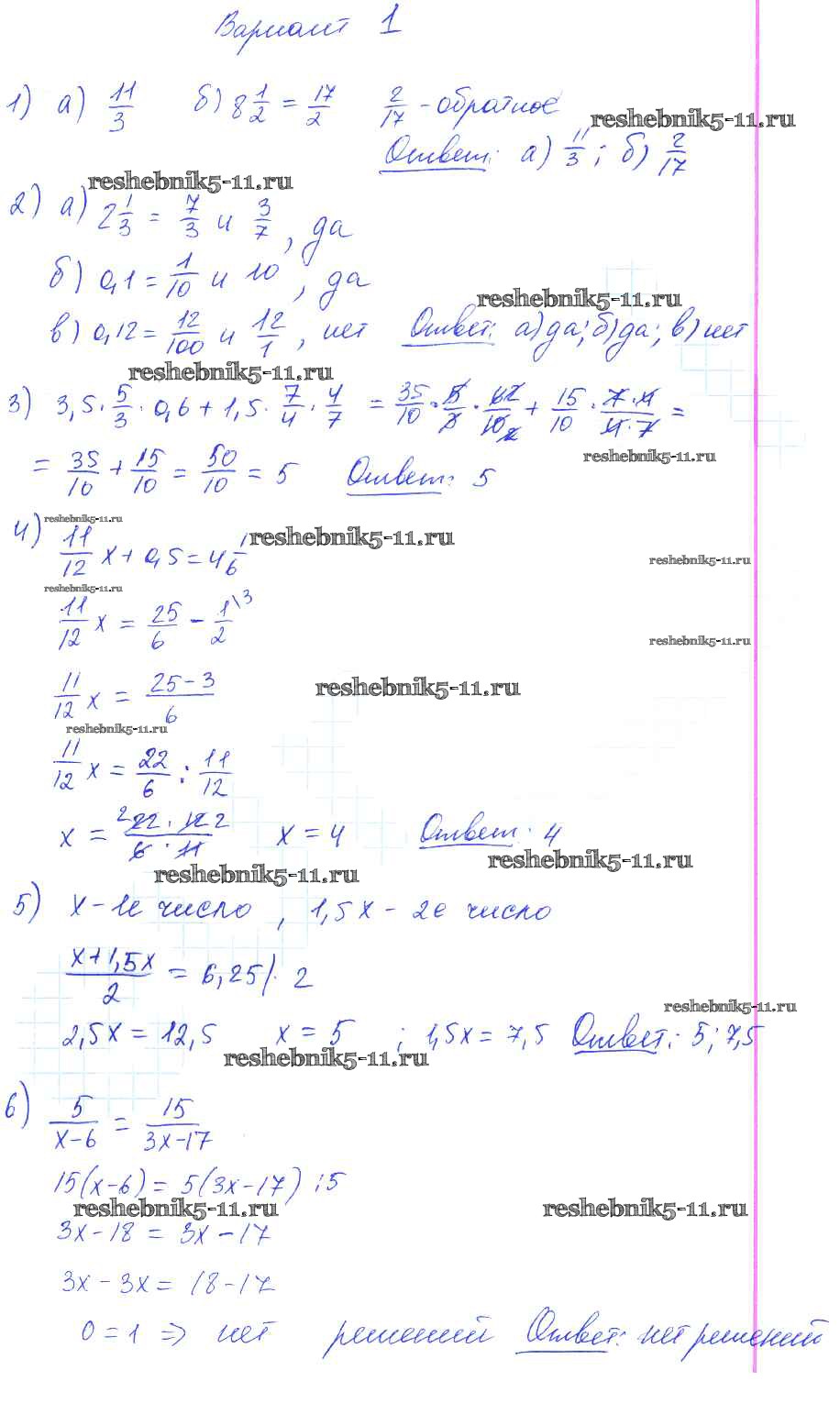 Готовая домашняя работа с ответами по Математике за 6 класс Попов Дидактические материалы УМК Экзамен 2017 ФГОС - СР-16. Варианты 1