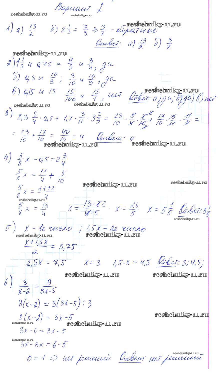 Готовая домашняя работа с ответами по Математике за 6 класс Попов Дидактические материалы УМК Экзамен 2017 ФГОС - СР-16. Варианты 2