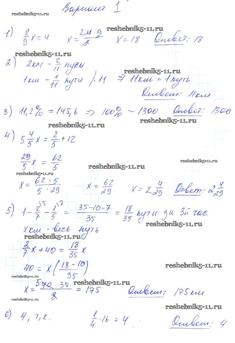 Готовая домашняя работа с ответами по Математике за 6 класс Попов Дидактические материалы УМК Экзамен 2017 ФГОС - СР-18. Варианты 1