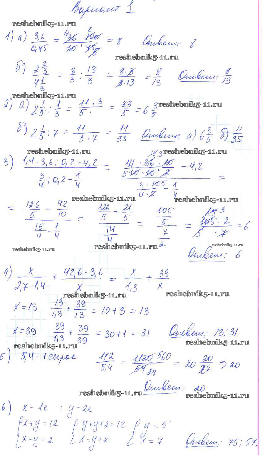 Готовая домашняя работа с ответами по Математике за 6 класс Попов Дидактические материалы УМК Экзамен 2017 ФГОС - СР-19. Варианты 1