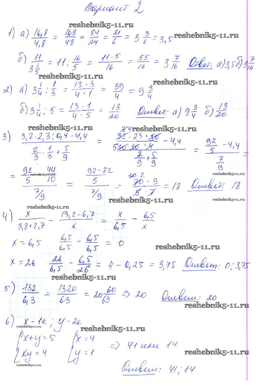 Готовая домашняя работа с ответами по Математике за 6 класс Попов Дидактические материалы УМК Экзамен 2017 ФГОС - СР-19. Варианты 2