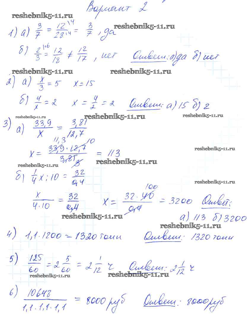 Готовая домашняя работа с ответами по Математике за 6 класс Попов Дидактические материалы УМК Экзамен 2017 ФГОС - СР-21. Варианты 2