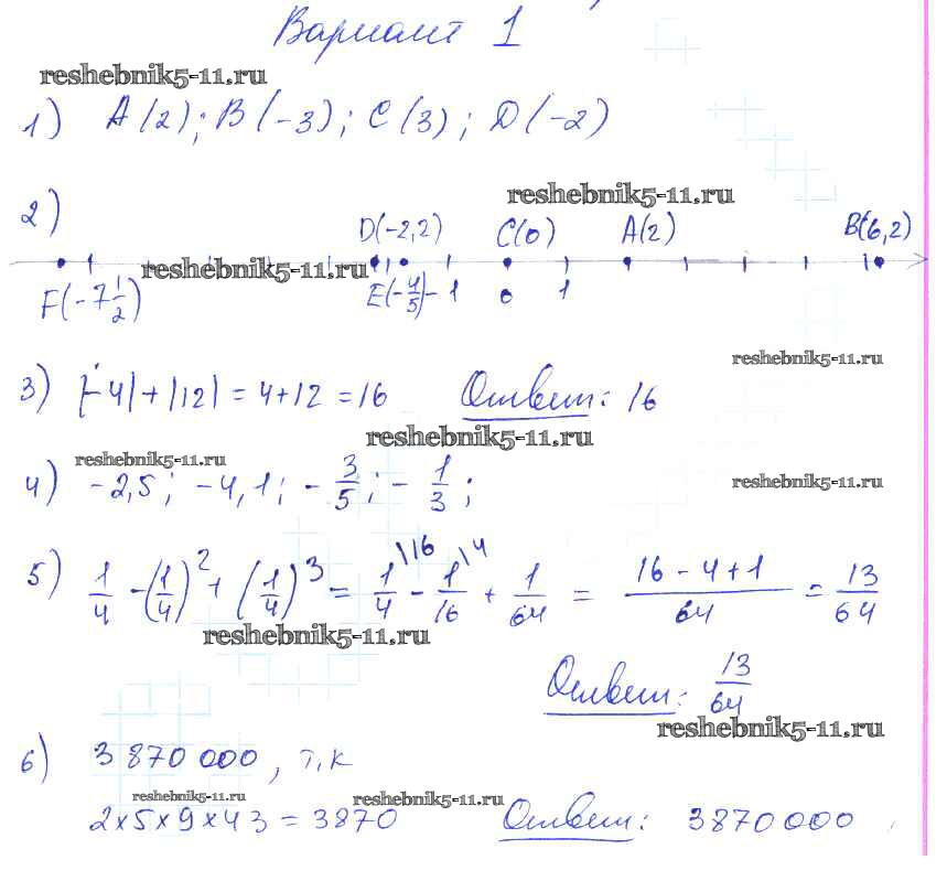 Готовая домашняя работа с ответами по Математике за 6 класс Попов Дидактические материалы УМК Экзамен 2017 ФГОС - СР-24. Варианты 1