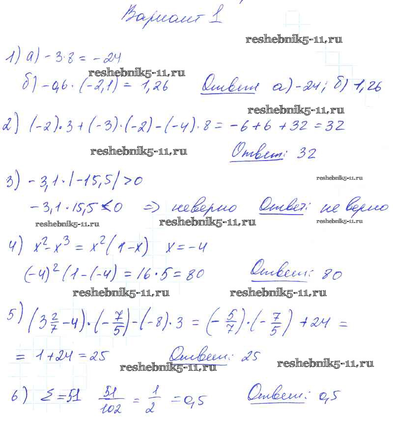 Готовая домашняя работа с ответами по Математике за 6 класс Попов Дидактические материалы УМК Экзамен 2017 ФГОС - СР-31. Варианты 1