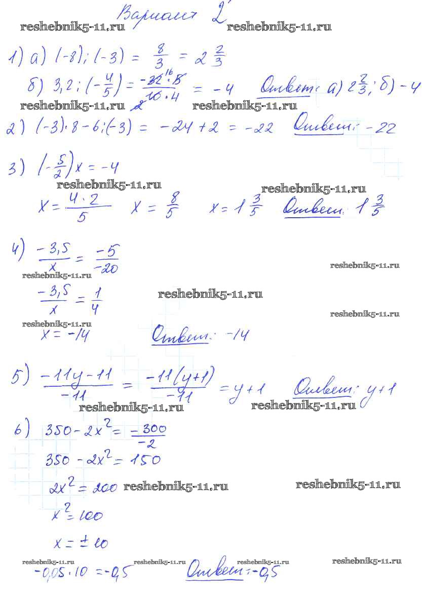 Готовая домашняя работа с ответами по Математике за 6 класс Попов Дидактические материалы УМК Экзамен 2017 ФГОС - СР-32. Варианты 2