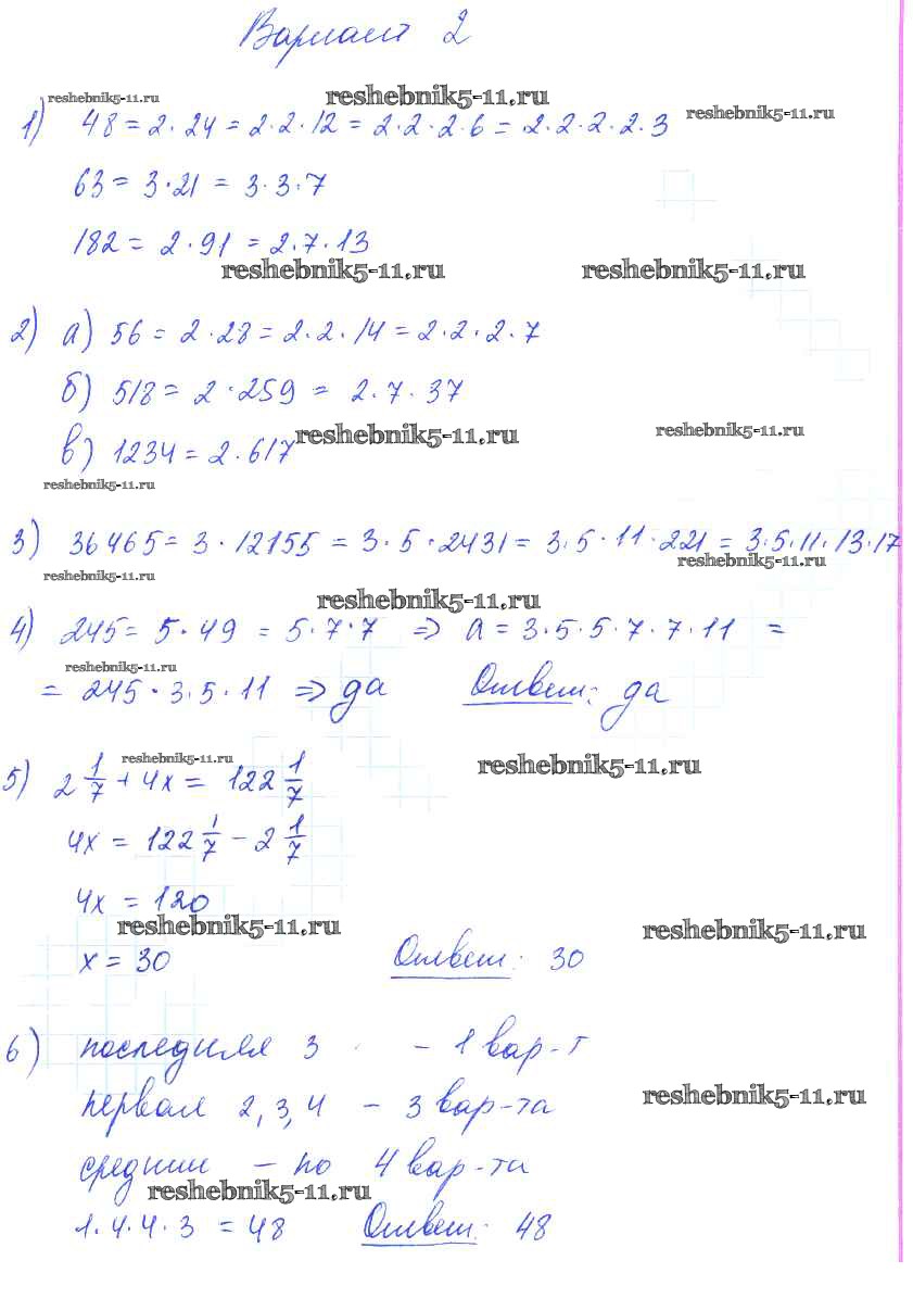 Готовая домашняя работа с ответами по Математике за 6 класс Попов Дидактические материалы УМК Экзамен 2017 ФГОС - СР-5. Варианты 2