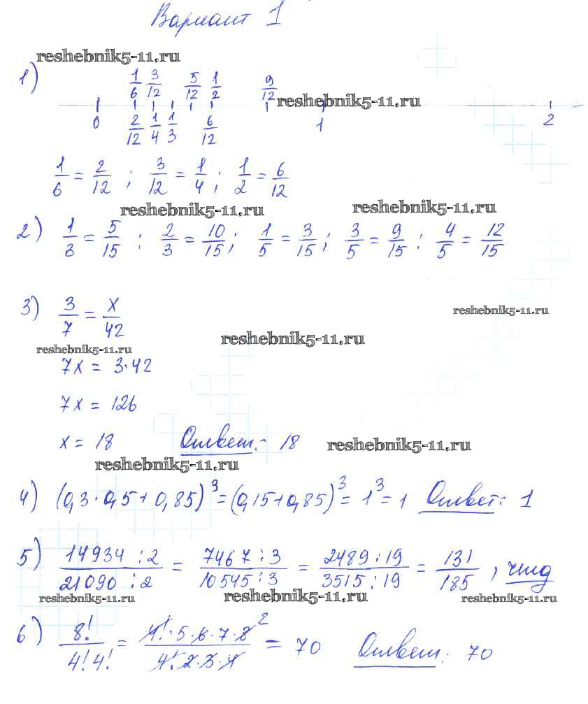 Готовая домашняя работа с ответами по Математике за 6 класс Попов Дидактические материалы УМК Экзамен 2017 ФГОС - СР-8. Варианты 1
