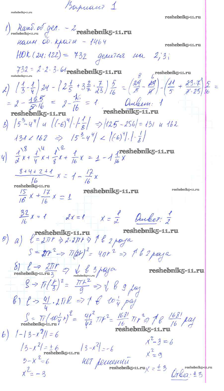 Готовая домашняя работа с ответами по Математике за 6 класс Попов Дидактические материалы УМК Экзамен 2017 ФГОС - КР-10. Варианты 1