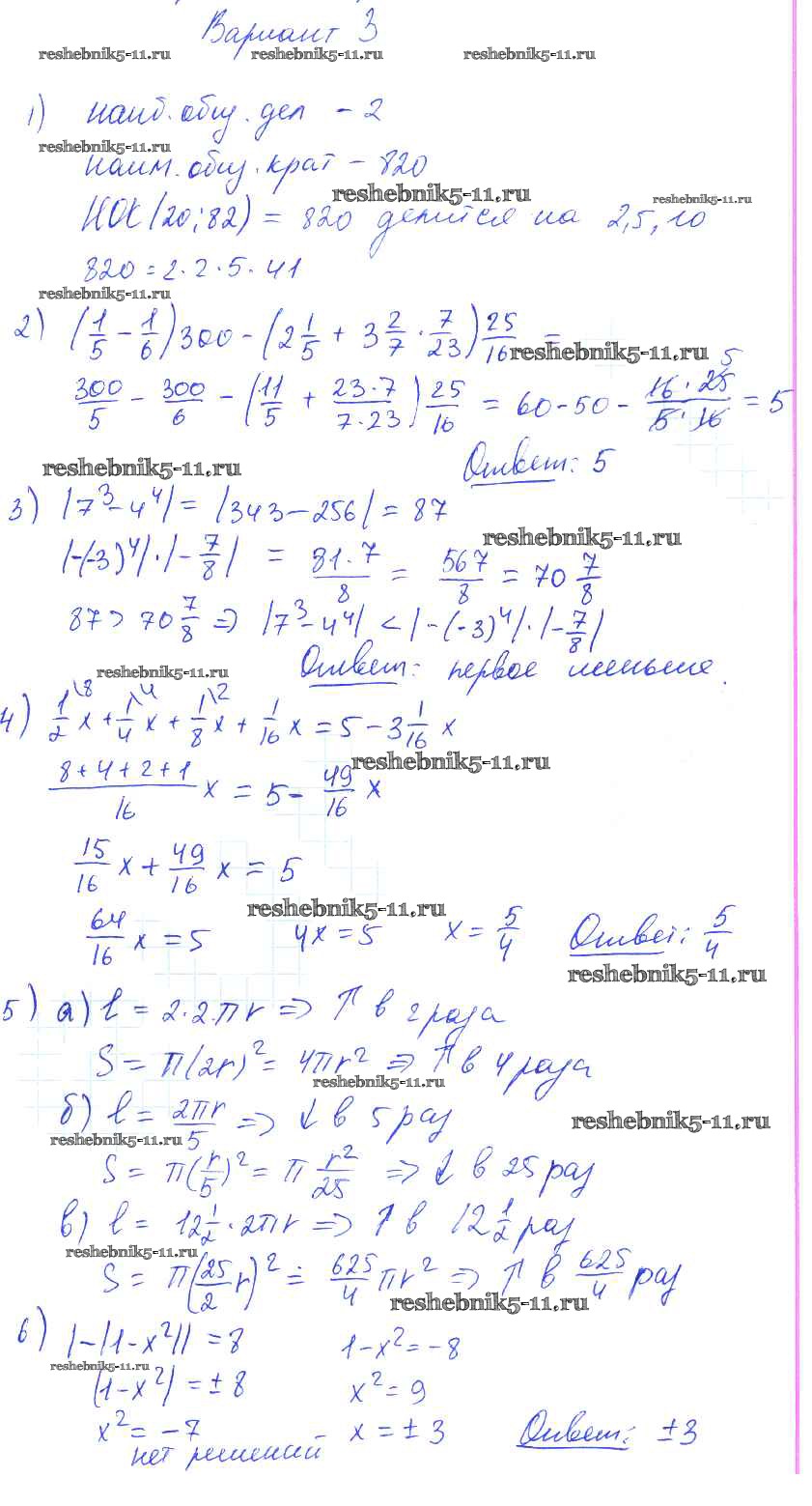 Готовая домашняя работа с ответами по Математике за 6 класс Попов Дидактические материалы УМК Экзамен 2017 ФГОС - КР-10. Варианты 3