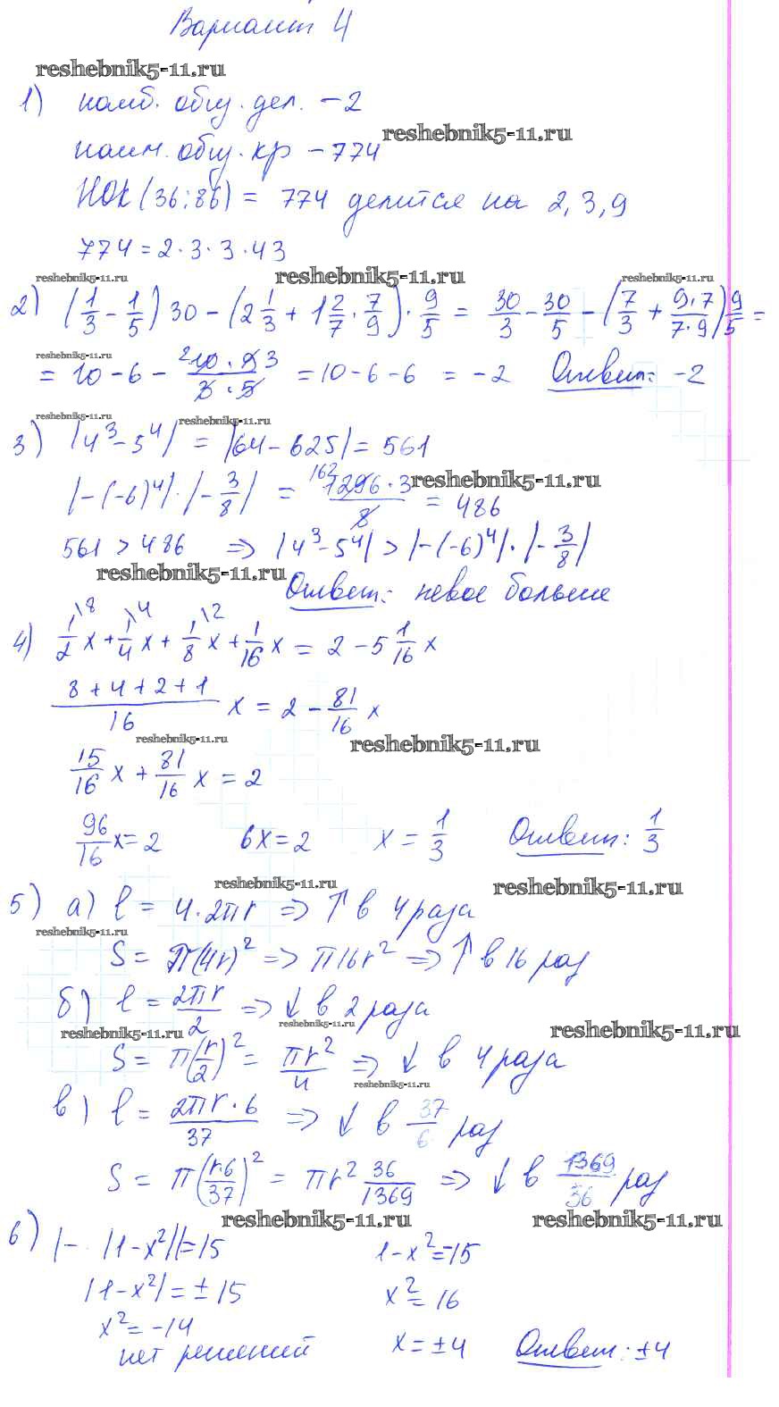 Готовая домашняя работа с ответами по Математике за 6 класс Попов Дидактические материалы УМК Экзамен 2017 ФГОС - КР-10. Варианты 4