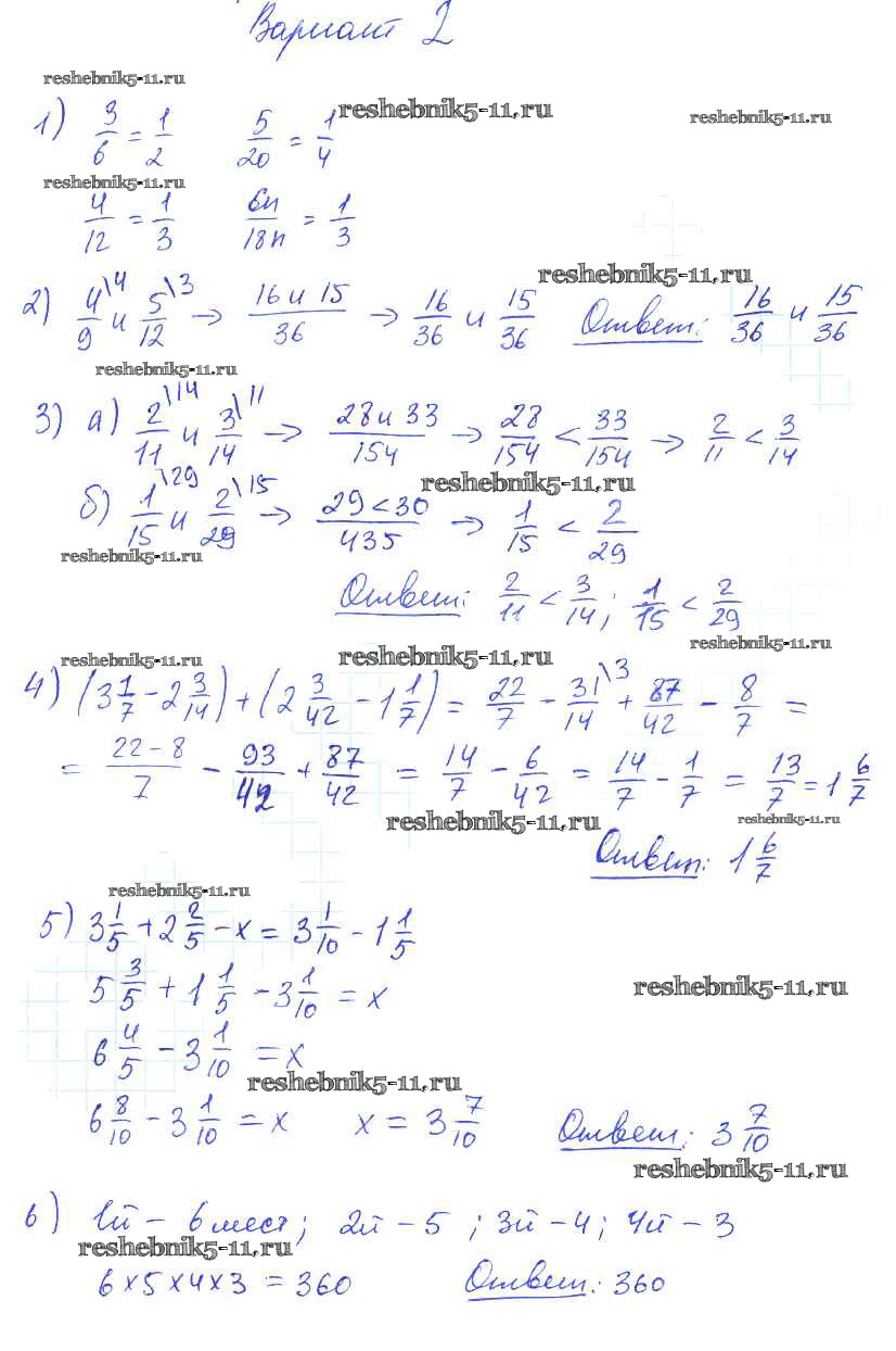 Готовая домашняя работа с ответами по Математике за 6 класс Попов Дидактические материалы УМК Экзамен 2017 ФГОС - КР-2. Варианты 2