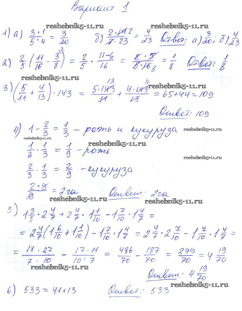 Готовая домашняя работа с ответами по Математике за 6 класс Попов Дидактические материалы УМК Экзамен 2017 ФГОС - КР-3. Варианты 1
