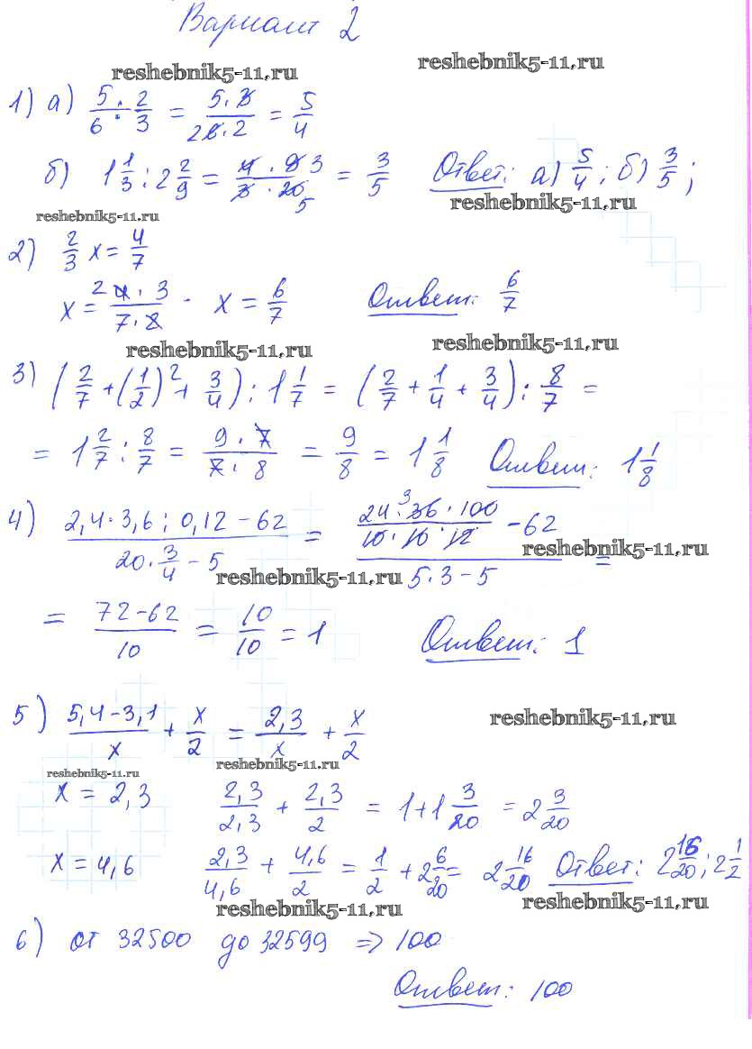 Готовая домашняя работа с ответами по Математике за 6 класс Попов Дидактические материалы УМК Экзамен 2017 ФГОС - КР-4. Варианты 2