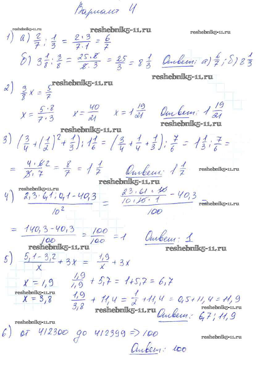 Готовая домашняя работа с ответами по Математике за 6 класс Попов Дидактические материалы УМК Экзамен 2017 ФГОС - КР-4. Варианты 4