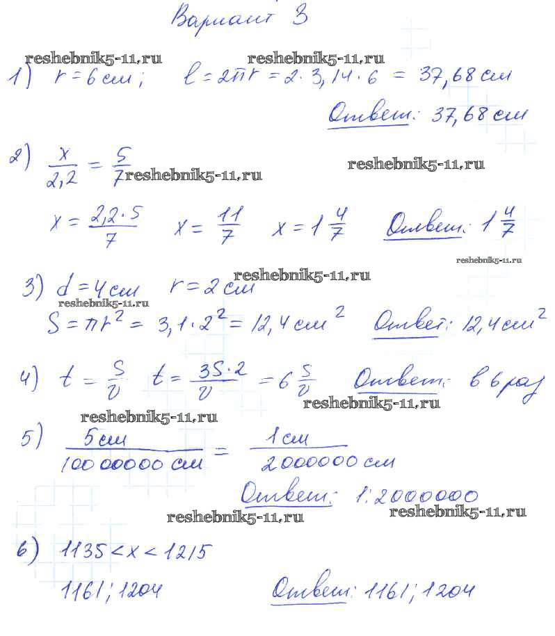 Готовая домашняя работа с ответами по Математике за 6 класс Попов Дидактические материалы УМК Экзамен 2017 ФГОС - КР-5. Варианты 3