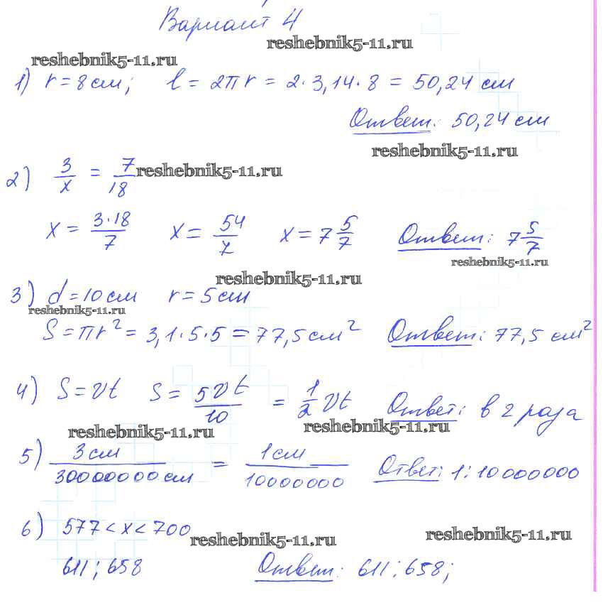 Готовая домашняя работа с ответами по Математике за 6 класс Попов Дидактические материалы УМК Экзамен 2017 ФГОС - КР-5. Варианты 4