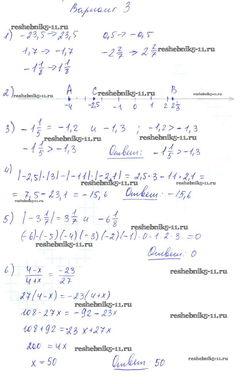Готовая домашняя работа с ответами по Математике за 6 класс Попов Дидактические материалы УМК Экзамен 2017 ФГОС - КР-6. Варианты 3