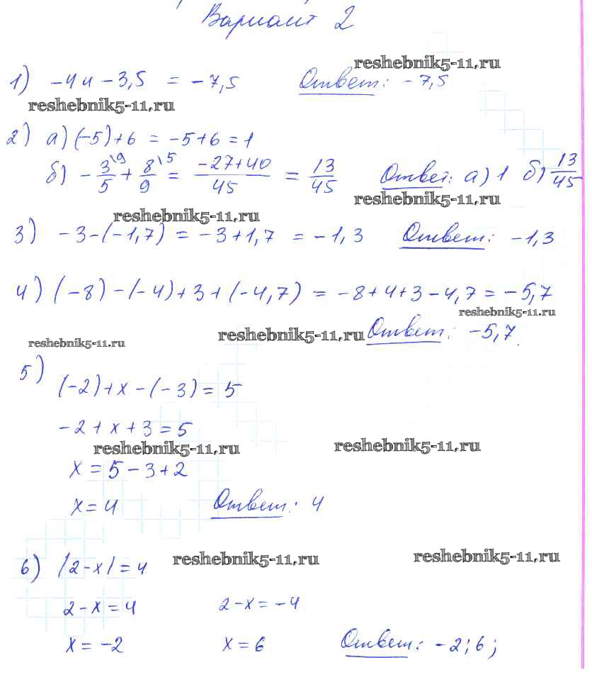 Готовая домашняя работа с ответами по Математике за 6 класс Попов Дидактические материалы УМК Экзамен 2017 ФГОС - КР-7. Варианты 2