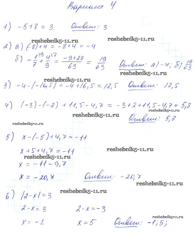 Готовая домашняя работа с ответами по Математике за 6 класс Попов Дидактические материалы УМК Экзамен 2017 ФГОС - КР-7. Варианты 4