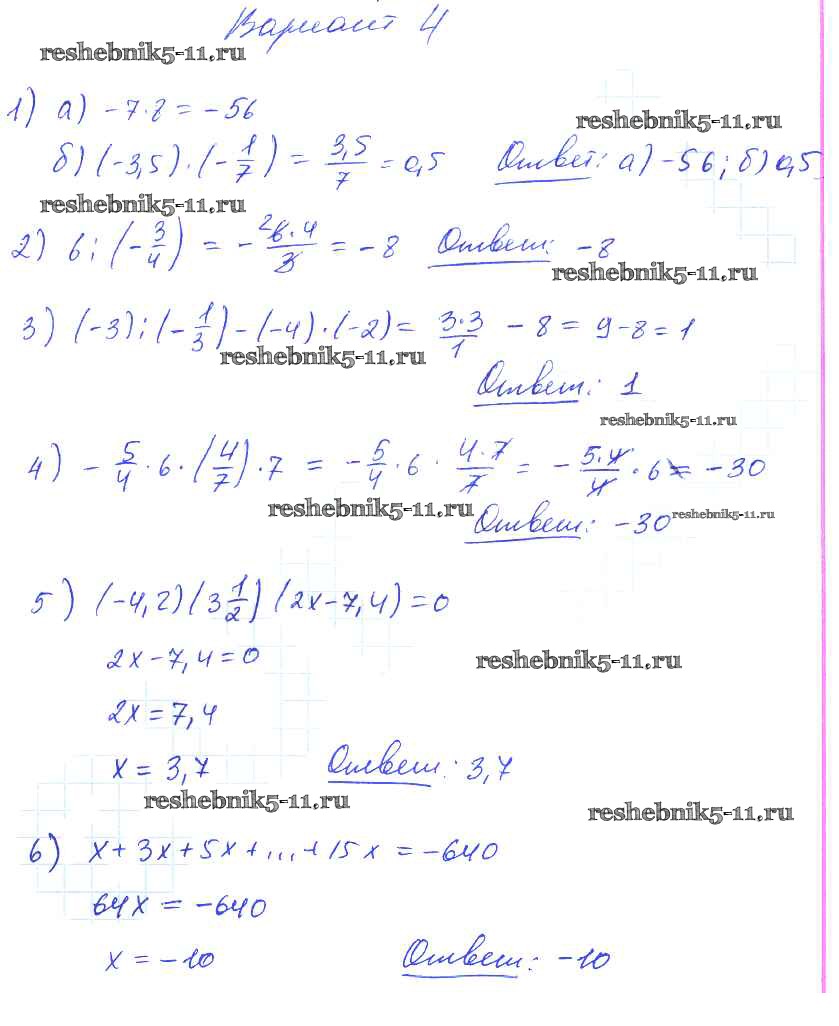 Готовая домашняя работа с ответами по Математике за 6 класс Попов Дидактические материалы УМК Экзамен 2017 ФГОС - КР-8. Варианты 4