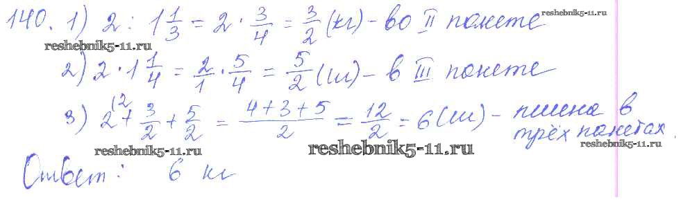 Готовая домашняя работа с ответами по Математике за 6 класс Чесноков, Нешков Дидактические материалы Академкнига 2014 ФГОС - Вариант 1 140