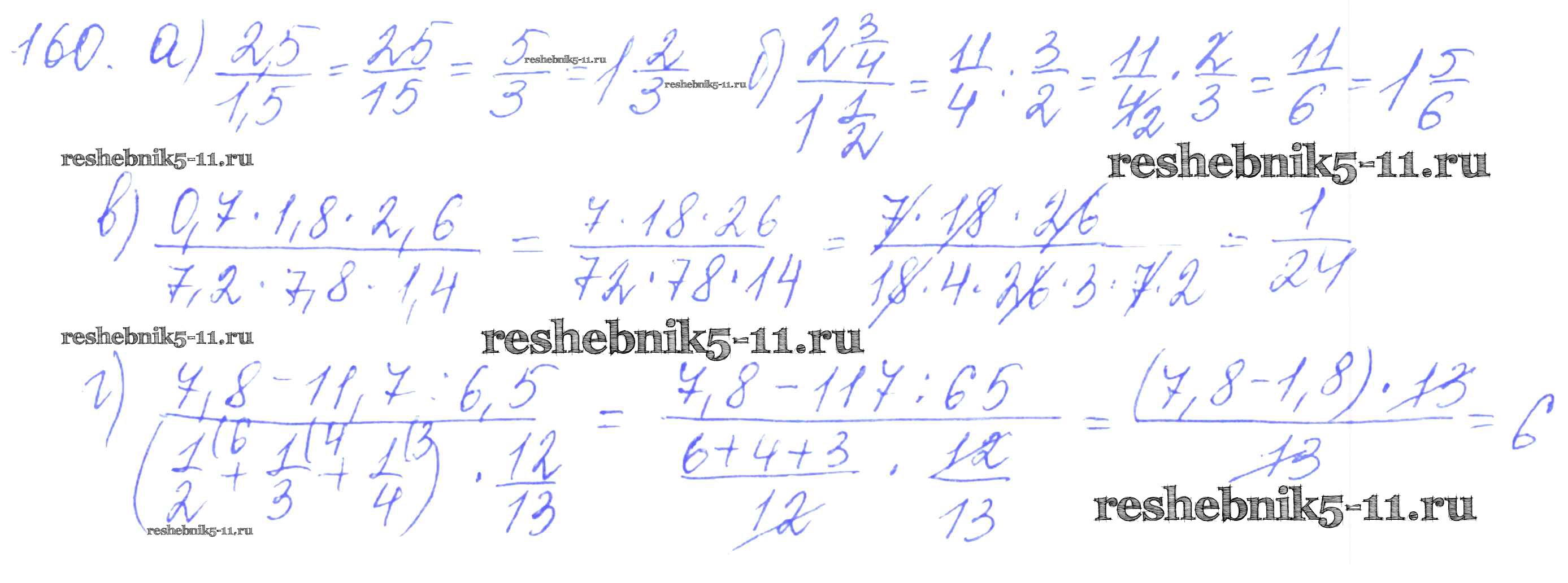 Готовая домашняя работа с ответами по Математике за 6 класс Чесноков, Нешков Дидактические материалы Академкнига 2014 ФГОС - Вариант 1 160