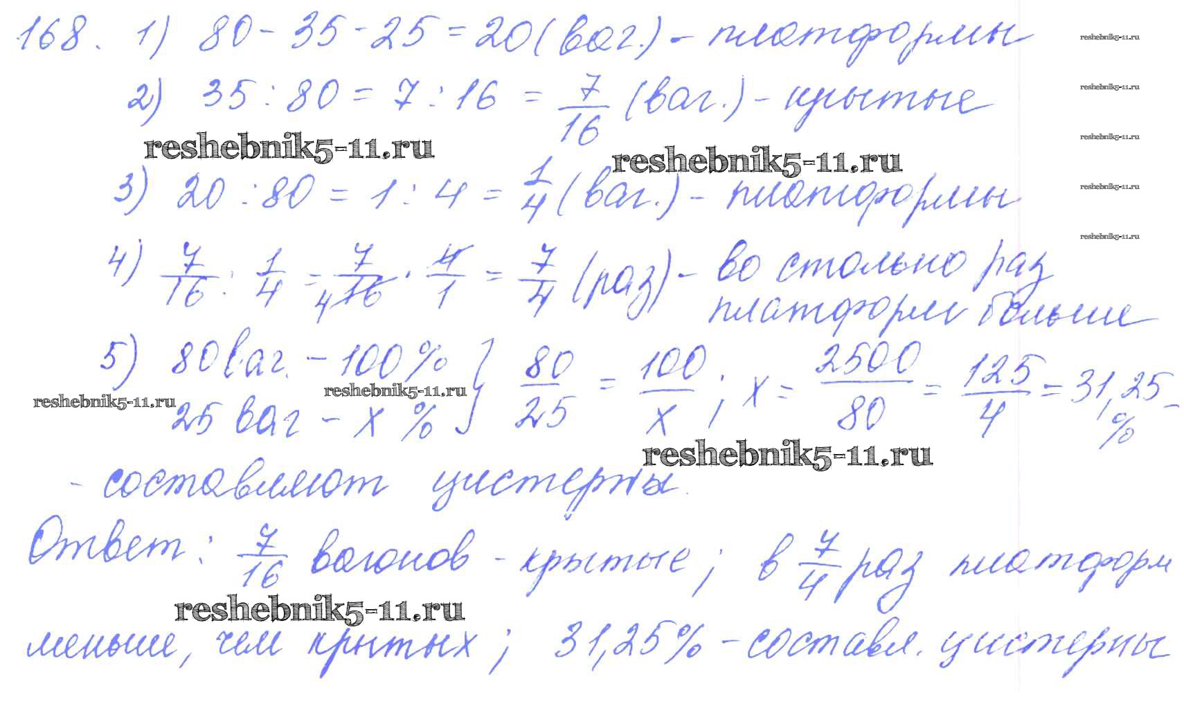Готовая домашняя работа с ответами по Математике за 6 класс Чесноков, Нешков Дидактические материалы Академкнига 2014 ФГОС - Вариант 1 168