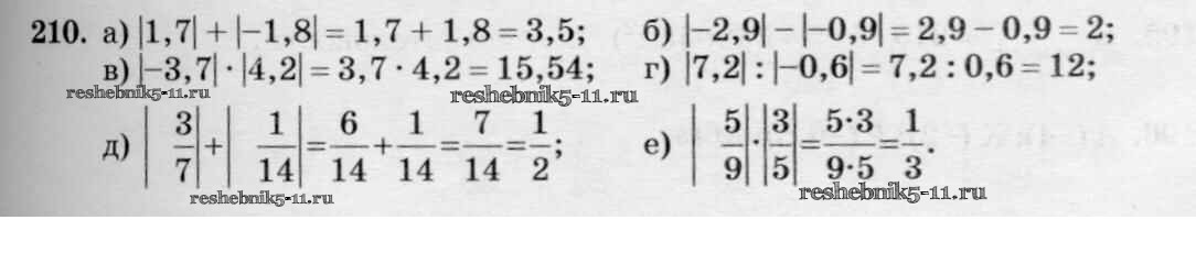 Готовая домашняя работа с ответами по Математике за 6 класс Чесноков, Нешков Дидактические материалы Академкнига 2014 ФГОС - Вариант 1 210