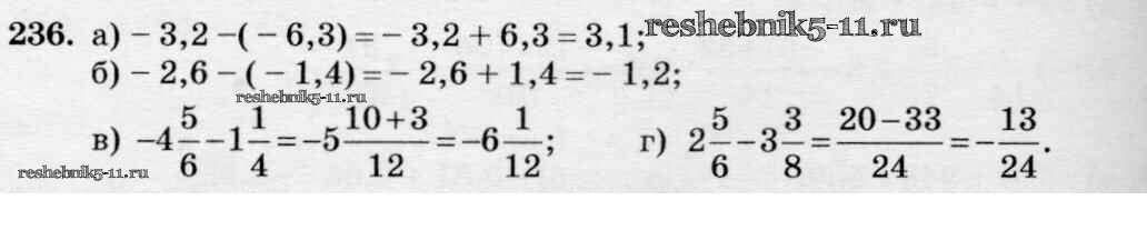 Готовая домашняя работа с ответами по Математике за 6 класс Чесноков, Нешков Дидактические материалы Академкнига 2014 ФГОС - Вариант 1 236