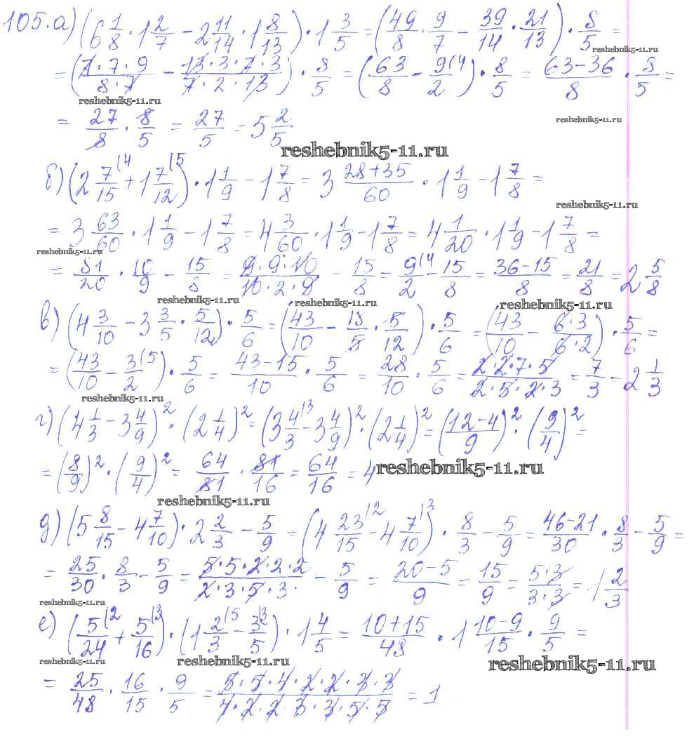 Готовая домашняя работа с ответами по Математике за 6 класс Чесноков, Нешков Дидактические материалы Академкнига 2014 ФГОС - Вариант 2 105
