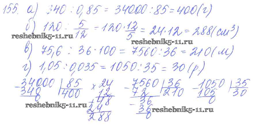 Готовая домашняя работа с ответами по Математике за 6 класс Чесноков, Нешков Дидактические материалы Академкнига 2014 ФГОС - Вариант 2 155