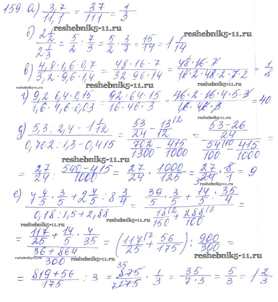 Готовая домашняя работа с ответами по Математике за 6 класс Чесноков, Нешков Дидактические материалы Академкнига 2014 ФГОС - Вариант 2 159