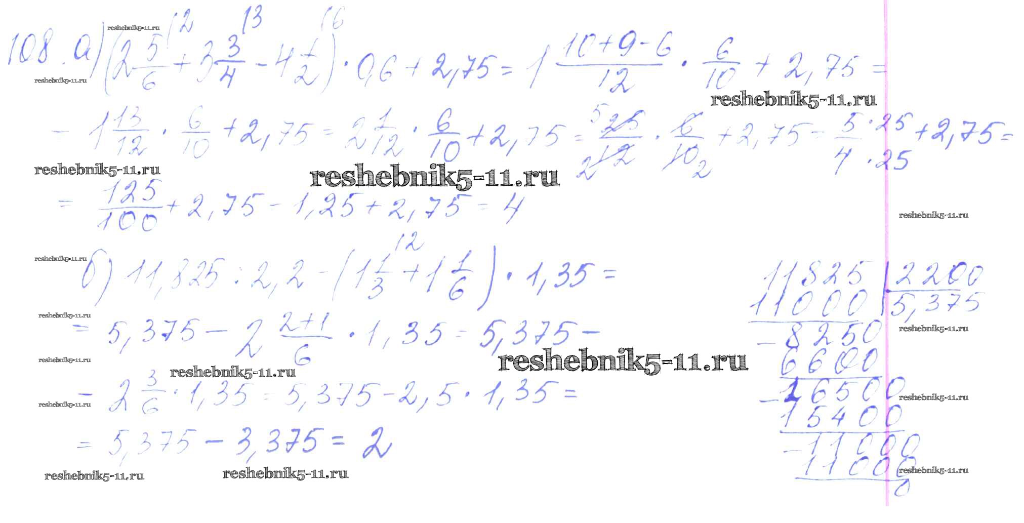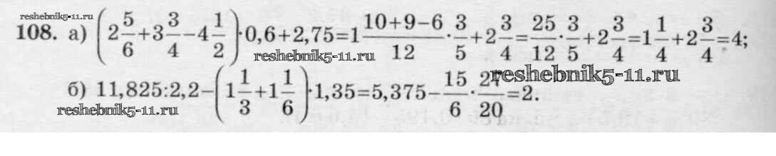 Готовая домашняя работа с ответами по Математике за 6 класс Чесноков, Нешков Дидактические материалы Академкнига 2014 ФГОС - Вариант 3 108
