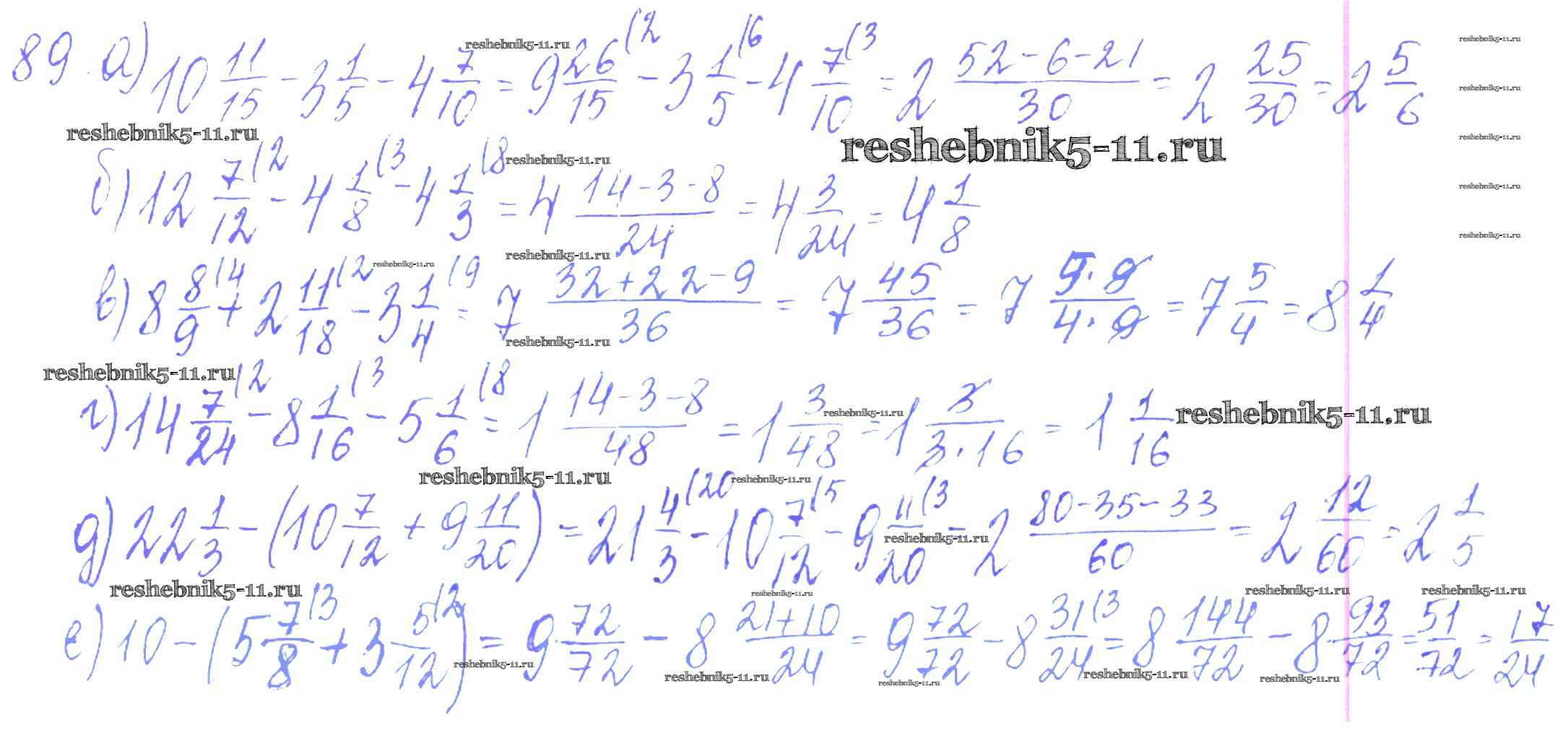 Готовая домашняя работа с ответами по Математике за 6 класс Чесноков, Нешков Дидактические материалы Академкнига 2014 ФГОС - Вариант 3 89