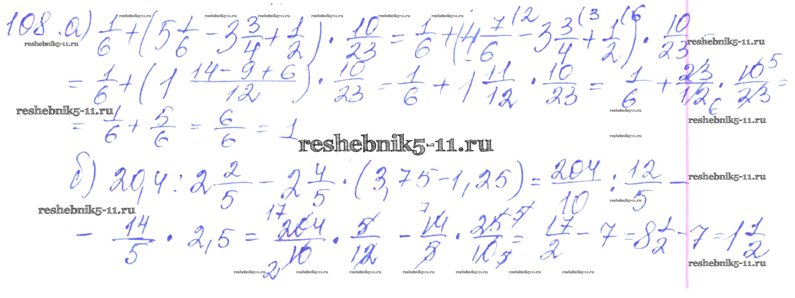 Готовая домашняя работа с ответами по Математике за 6 класс Чесноков, Нешков Дидактические материалы Академкнига 2014 ФГОС - Вариант 4 108