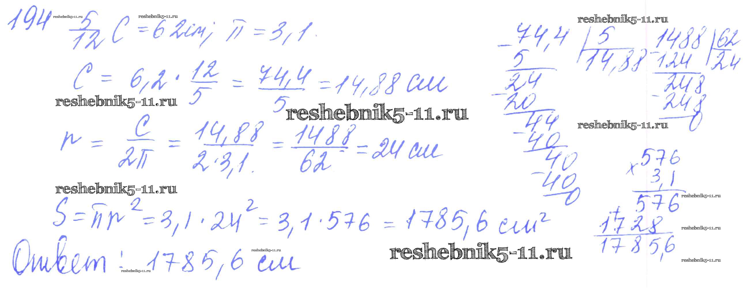 Готовая домашняя работа с ответами по Математике за 6 класс Чесноков, Нешков Дидактические материалы Академкнига 2014 ФГОС - Вариант 4 194