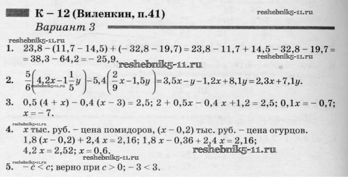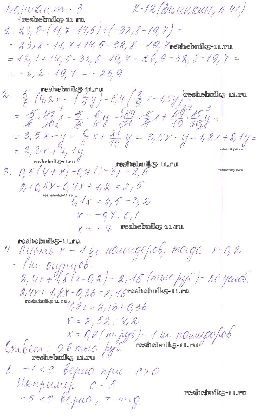 Решебник 1 / контрольная работа / к учебнику Виленкина / кр-12 / 3