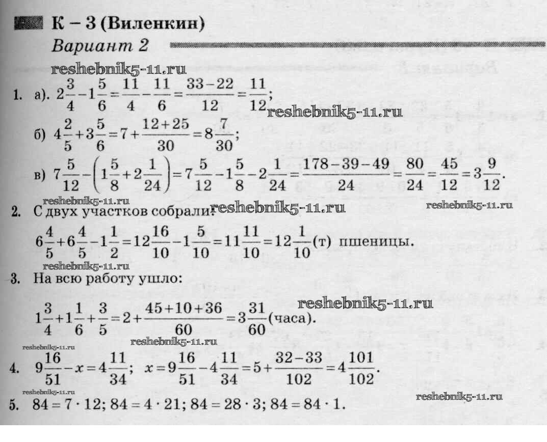 Решебник 1 / контрольная работа / к учебнику Виленкина / кр-3 / 2