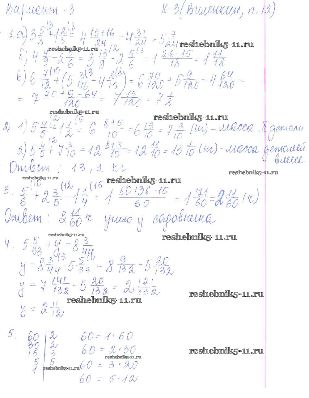 Решебник 1 / контрольная работа / к учебнику Виленкина / кр-3 / 3