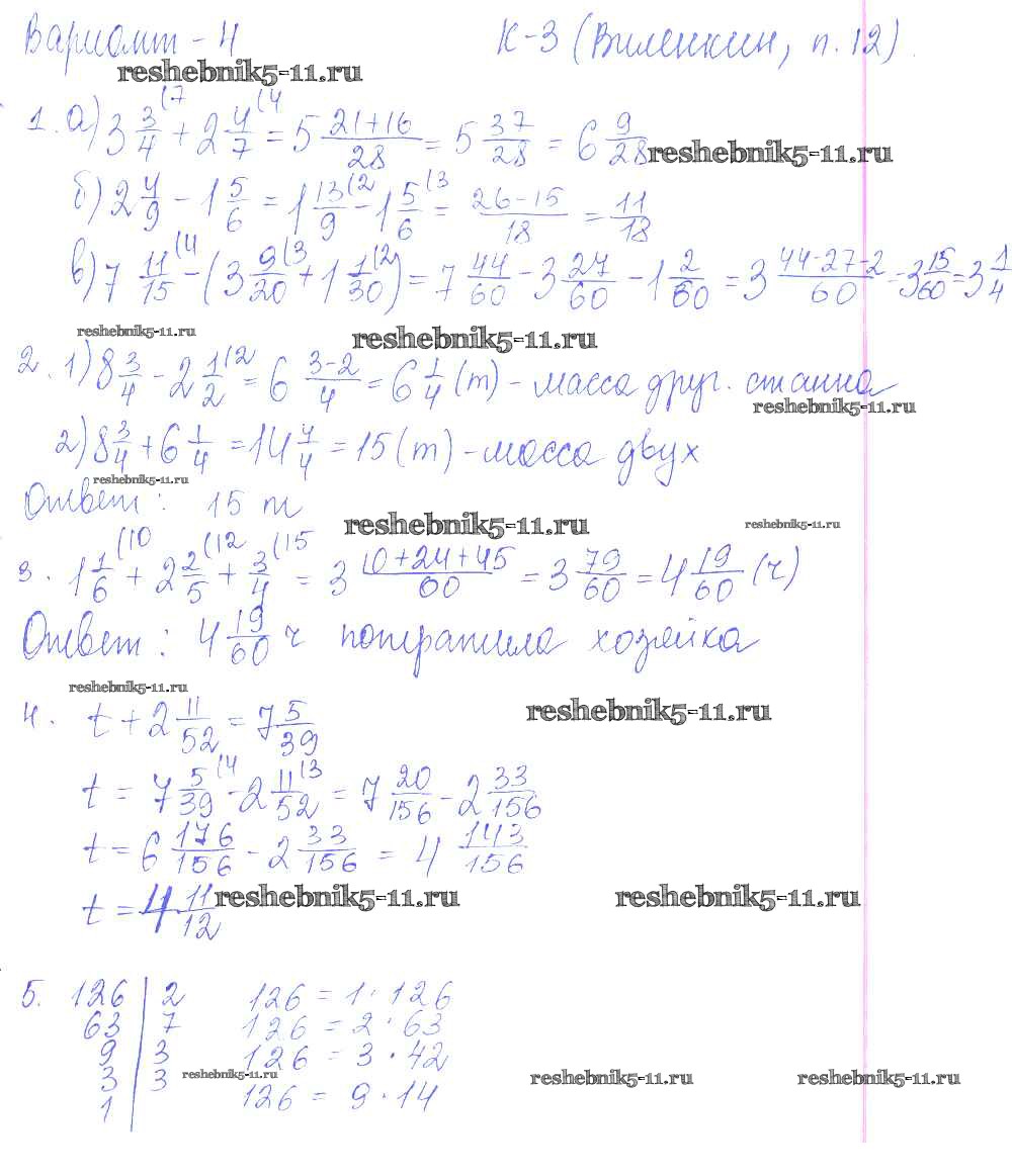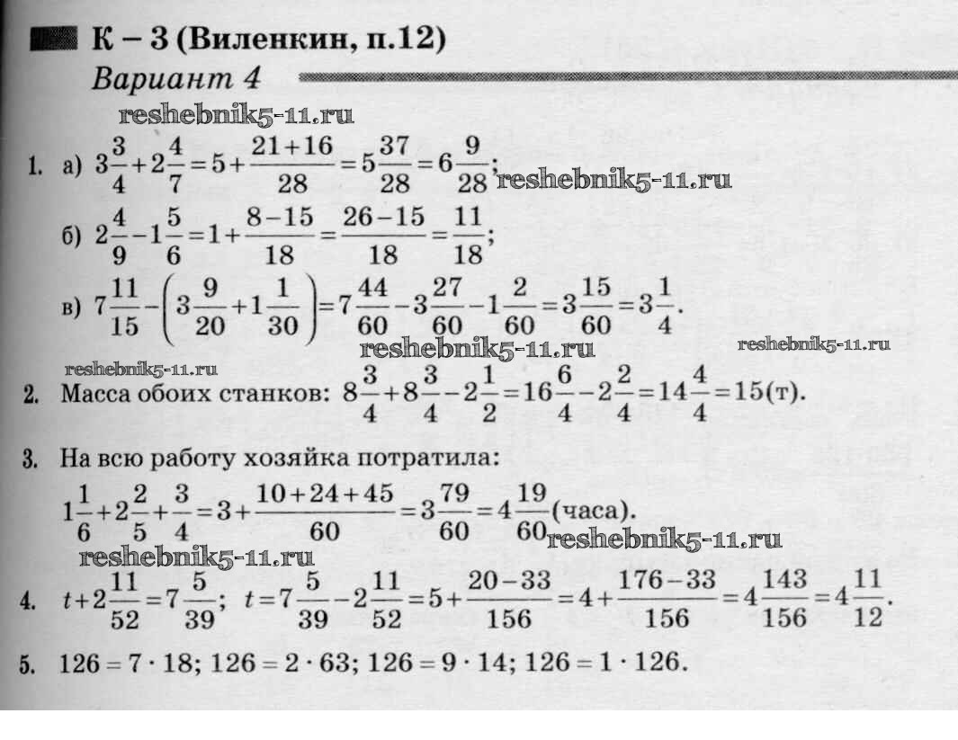 Решебник 1 / контрольная работа / к учебнику Виленкина / кр-3 / 4