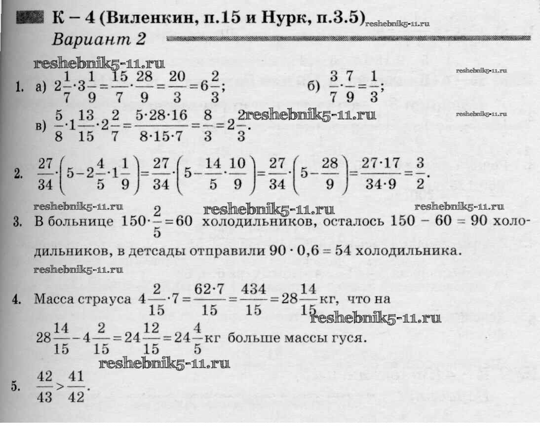 Решебник 1 / контрольная работа / к учебнику Виленкина / кр-4 / 2