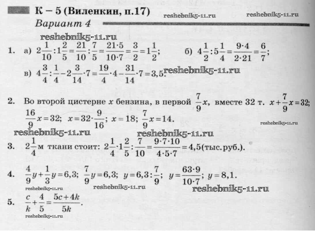 Решебник 1 / контрольная работа / к учебнику Виленкина / кр-5 / 4