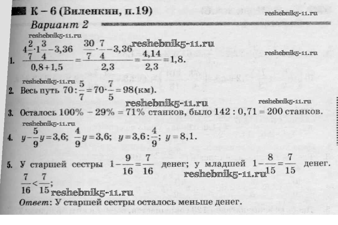 Решебник 1 / контрольная работа / к учебнику Виленкина / кр-6 / 2