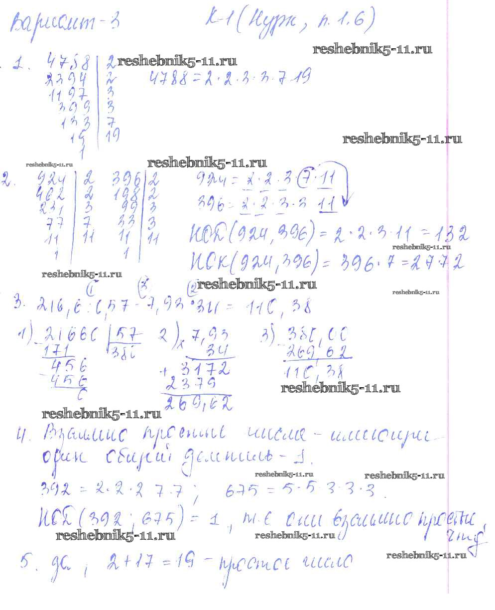 Готовая домашняя работа с ответами по Математике за 6 класс Чесноков, Нешков Дидактические материалы Академкнига 2014 ФГОС - КР-1 3